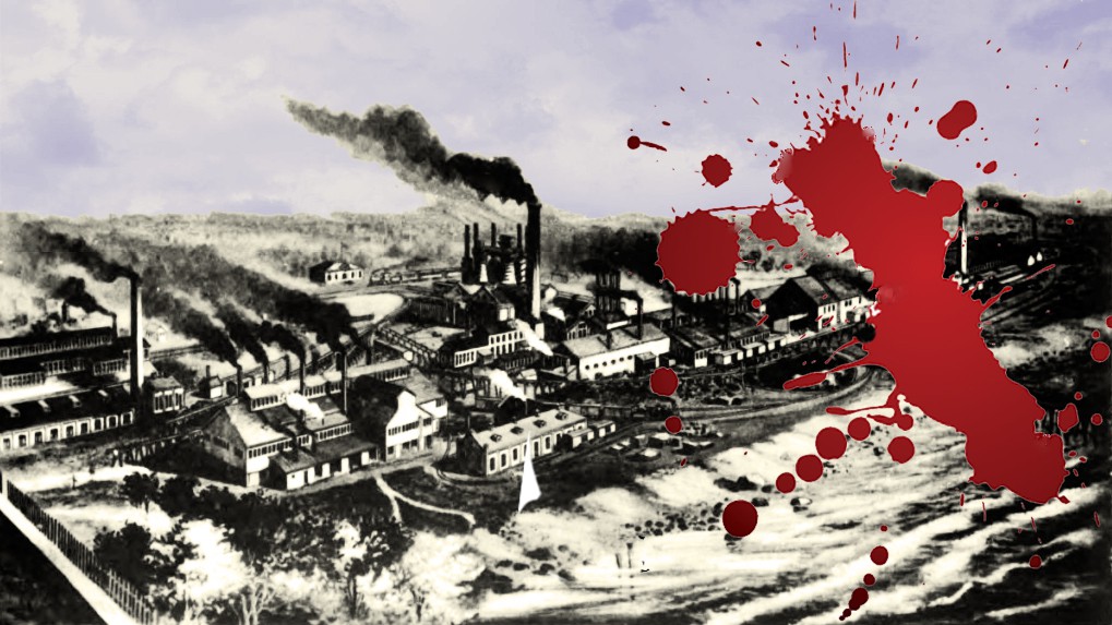 “The crowd began forming early this morning. About 1,500 were in line. About 8 o’clock they marched towards the rolling mills. Six military companies were ordered in line and stationed themselves in front of the works. The crowd marched on and were ordered to halt. They paid no attention, and a minute later the dread word “Fire!” was heard. The sharp crack of many rifles was heard, six companies taking deliberate aim at the advancing crowd and shooting to kill. A great panic ensued, and men and boys scrambled over each other in their haste to get beyond the reach of the gun.”