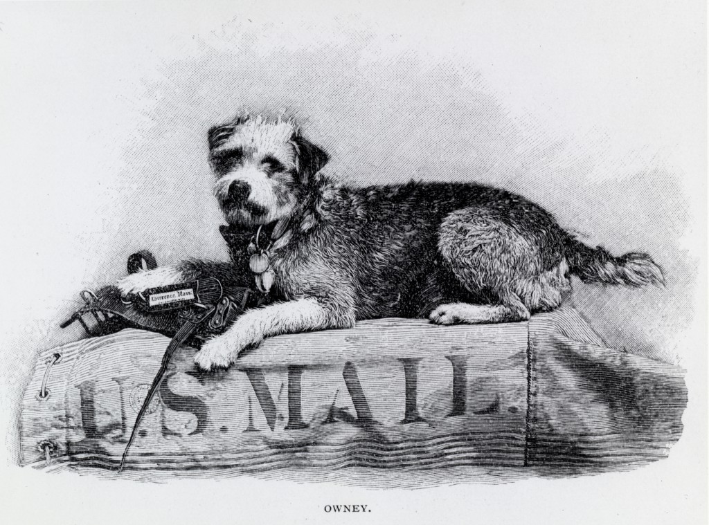 “A wanderer upon the face of the globe, if ever there was one, appeared in the office of Chief Clerk Frank P. Smith of the Railway Mail Service this morning,” reported the Milwaukee Journal on May 11, 1895. “Post Office Owney is a dog, but he is no ordinary dog. He is the property of 7,000 railway clerks.”