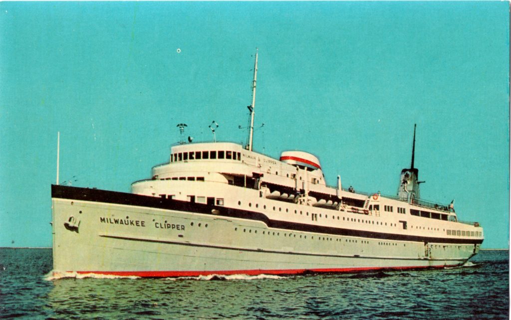 From 1941 to 1970, the Milwaukee Clipper linked Milwaukee and Muskegon, Michigan. The ship offered amenities including a live orchestra, a fine restaurant, and even a movie theatre. Carl Swanson collection